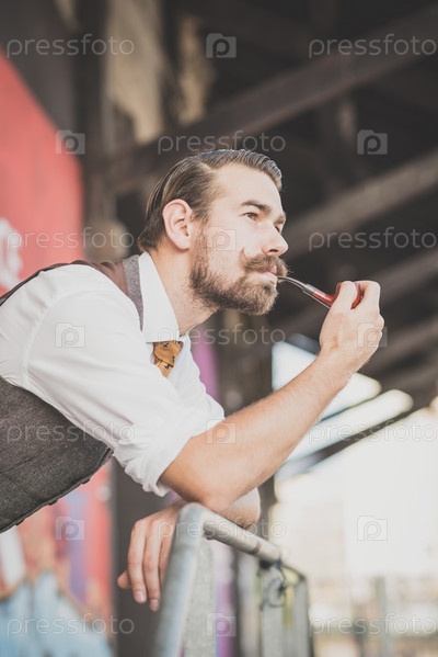 Красивый усатый мужчина-хипстер