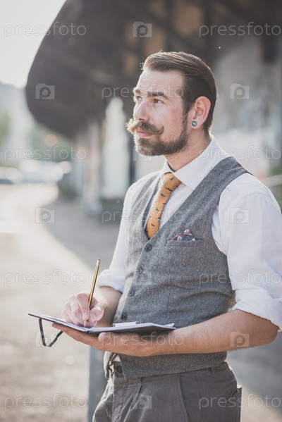Красивый усатый мужчина-хипстер