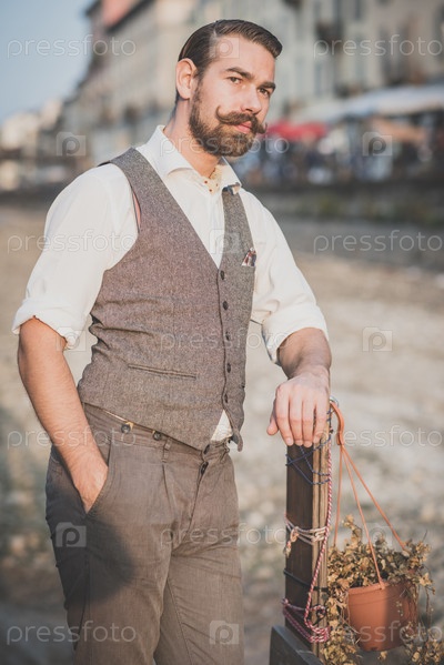 Красивый усатый мужчина-хипстер