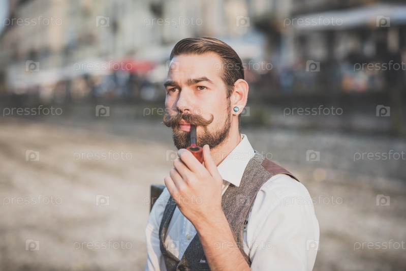 Красивый усатый мужчина-хипстер