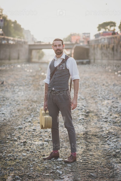 Красивый усатый мужчина-хипстер