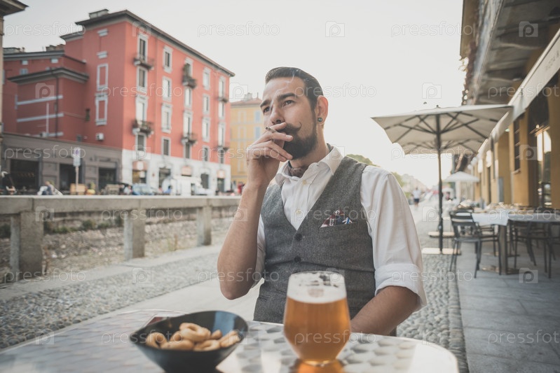 Красивый усатый мужчина-хипстер