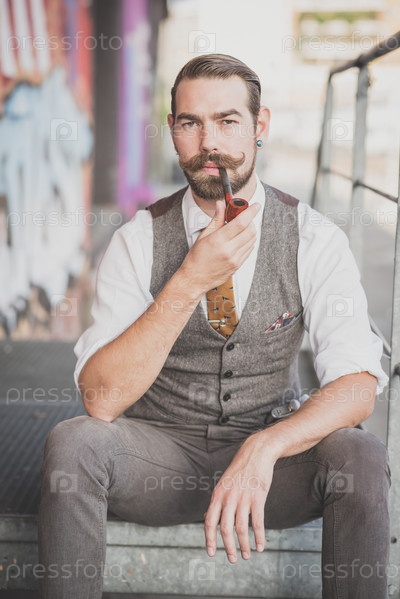 Красивый усатый мужчина-хипстер