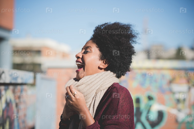 Красивая кудрявая темнокожая женщина