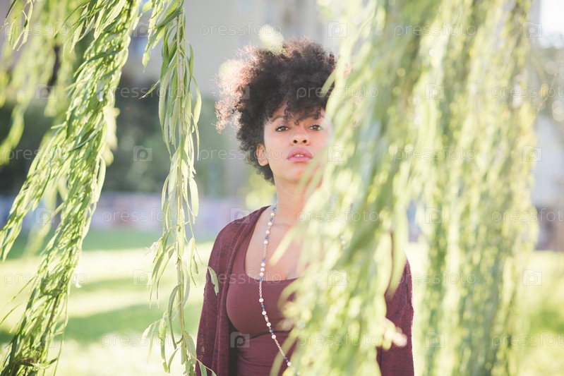Красивая кудрявая темнокожая женщина