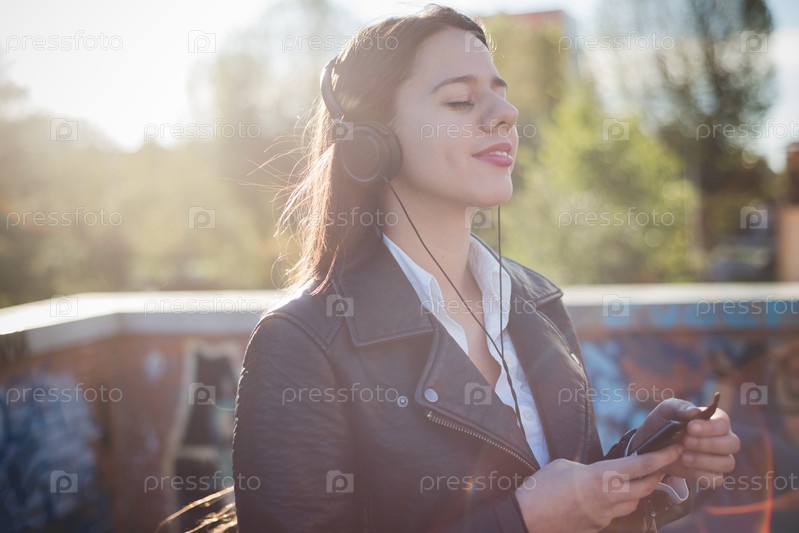 Красивая длинноволосая женщина в городе