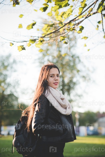 Красивая длинноволосая женщина в городе