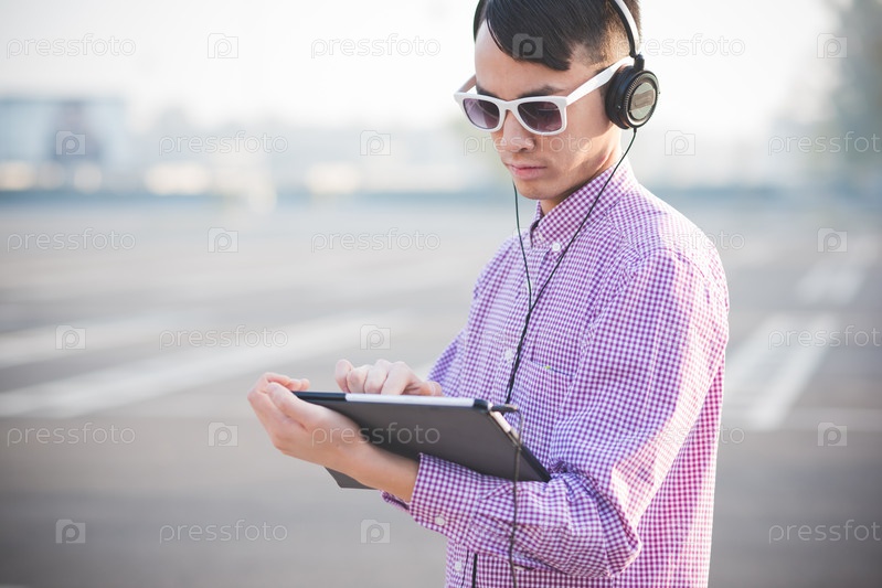 Молодой азиат слушает музыку