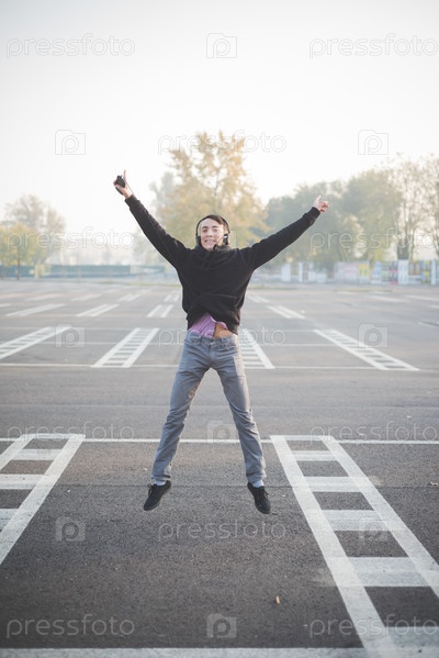 Молодой азиат слушает музыку