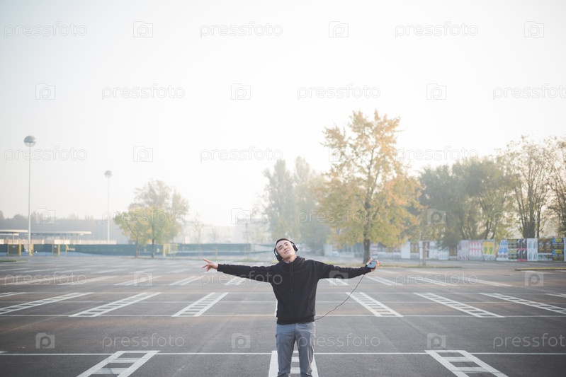 Молодой азиат слушает музыку