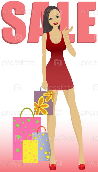 Красивая девушка с сумками на распродаже