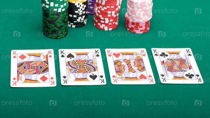Четыре короля и кучи счетчиков на зеленой ткани
