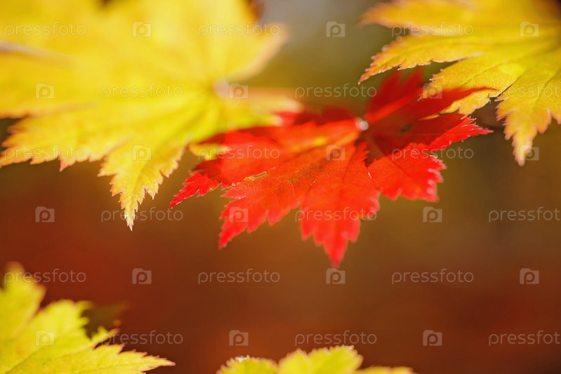 Цветные кленовые листья на ветвях