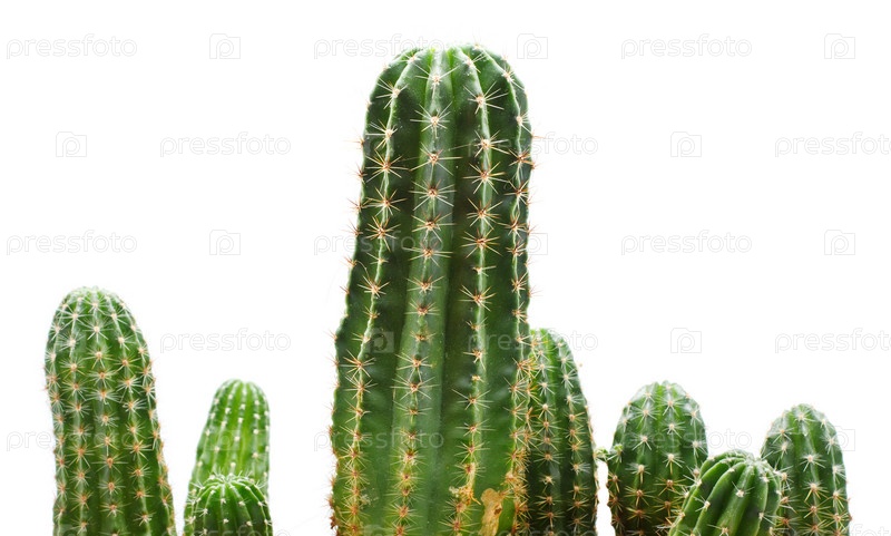 Зеленые кактусы, изолированные на белом фоне