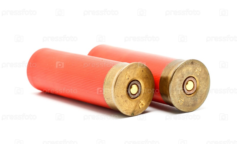 Два красных патрона для дробовика, изолированных на белом фоне