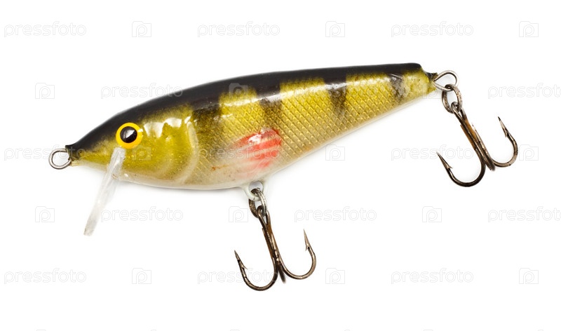 Пластиковая приманка для рыбалки на белом фоне