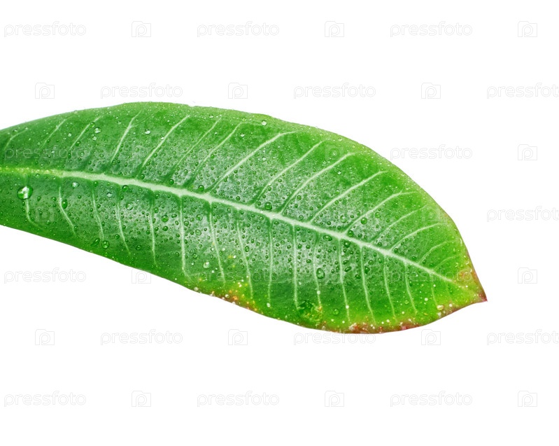 Зеленый лист с коричневыми пятнами, изолированный на белом фоне