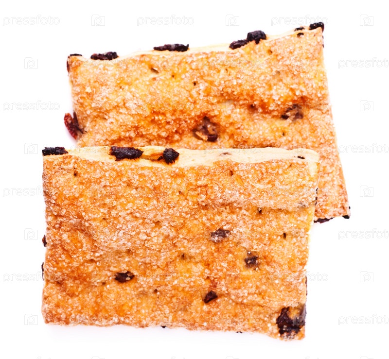 Сдобный пирог с изюмом, изолированные на белом фоне