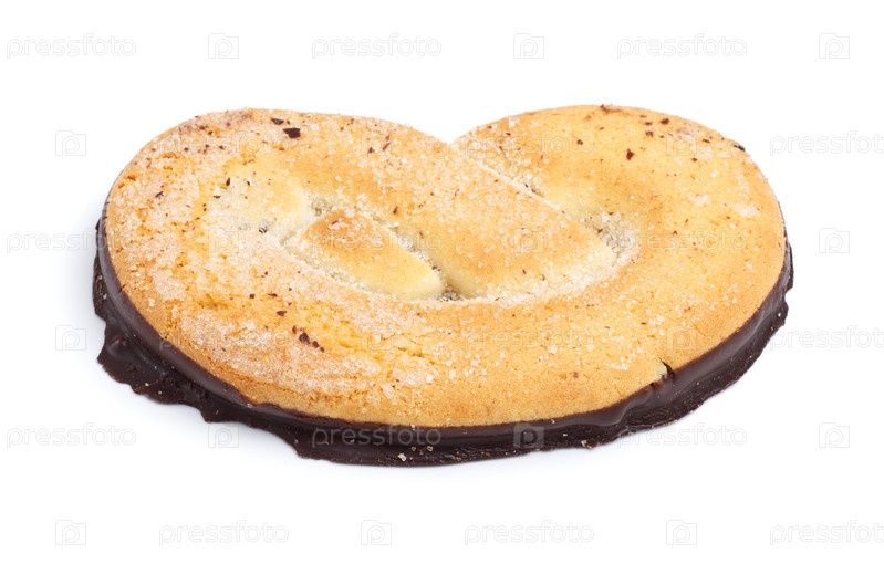 Песочное печенье с шоколадной глазурью, изолированное на белом фоне
