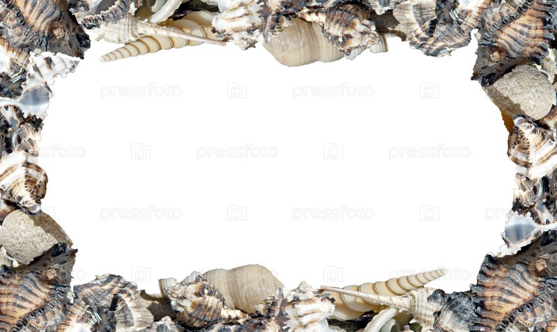 Ракушки на белом фоне, выложенные в виде рамочки