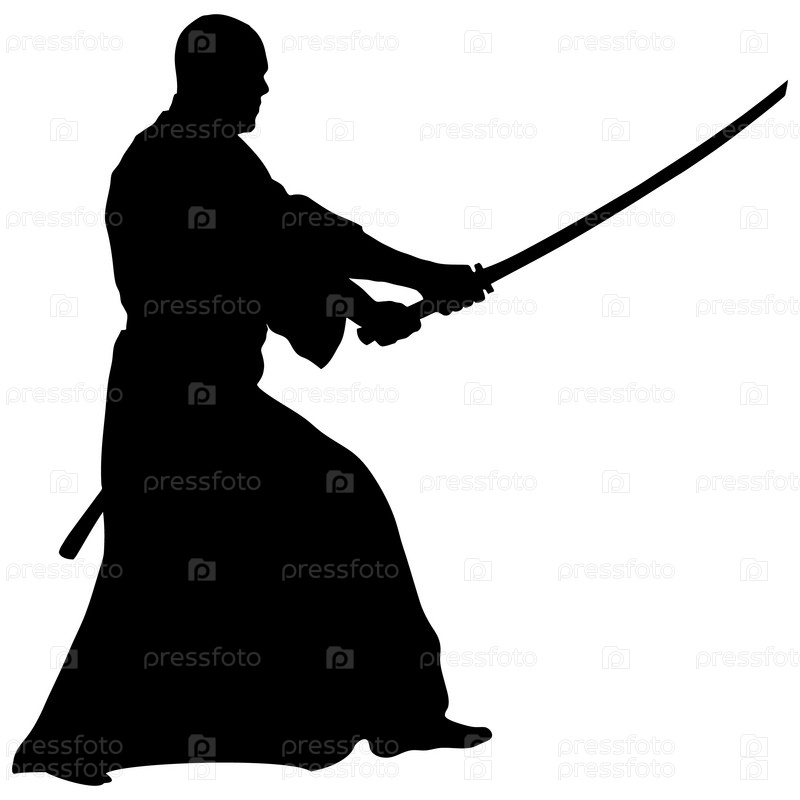 Силуэт человека с мечом на белом фоне