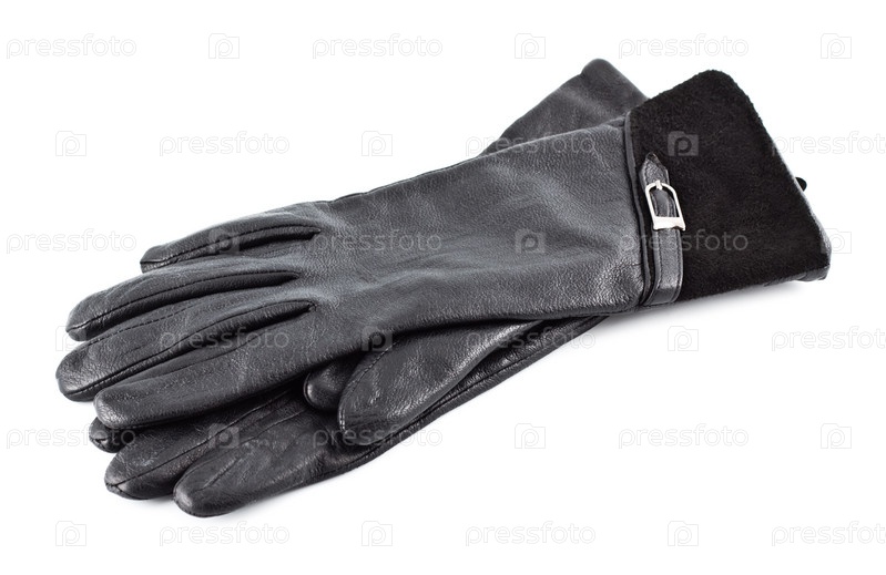 Женские черные кожаные перчатки, изолированные на белом фоне