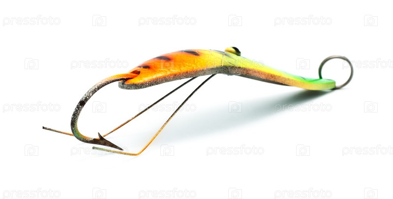 Пластиковая приманка для рыбалки на белом фоне