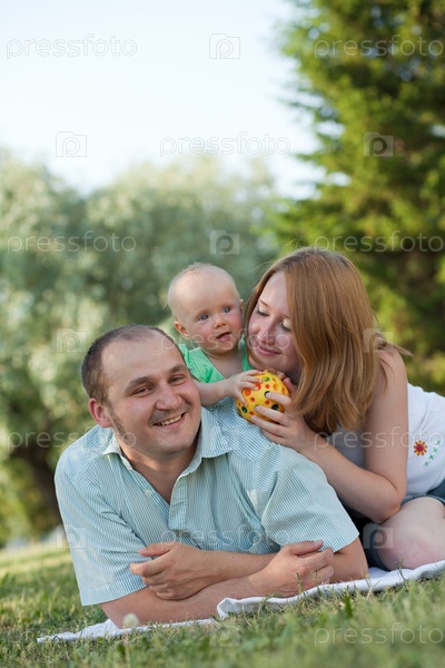 Родители отдыхают в парке с маленькой дочкой