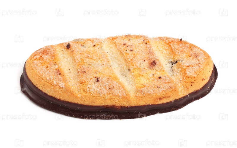 Песочное печенье с шоколадной глазурью, изолированное на белом фоне