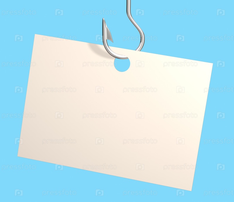 Фон - пустая бумажная карточка, подвешенная на рыболовном крюке