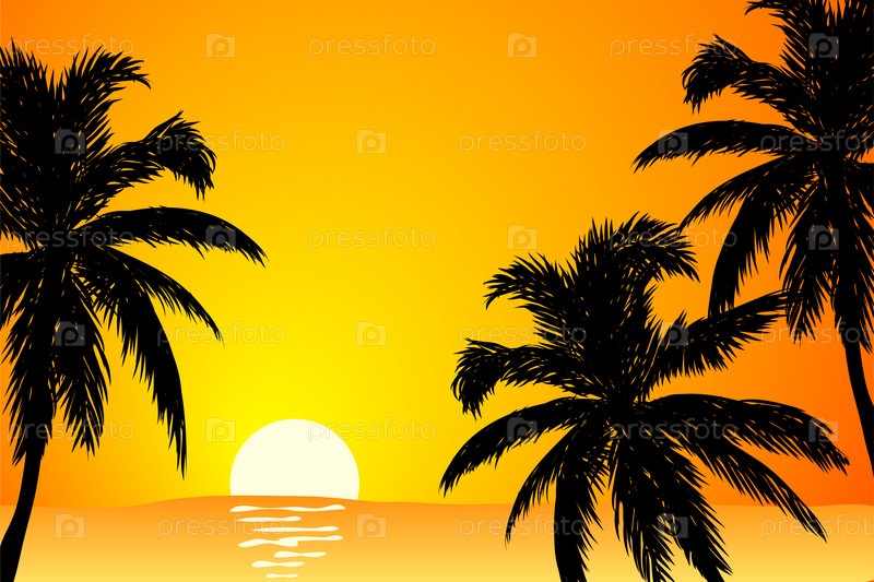 Пальмы на фоне морского заката