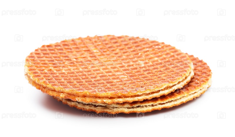 Голландские вафли с карамелью, изолированные на белом фоне