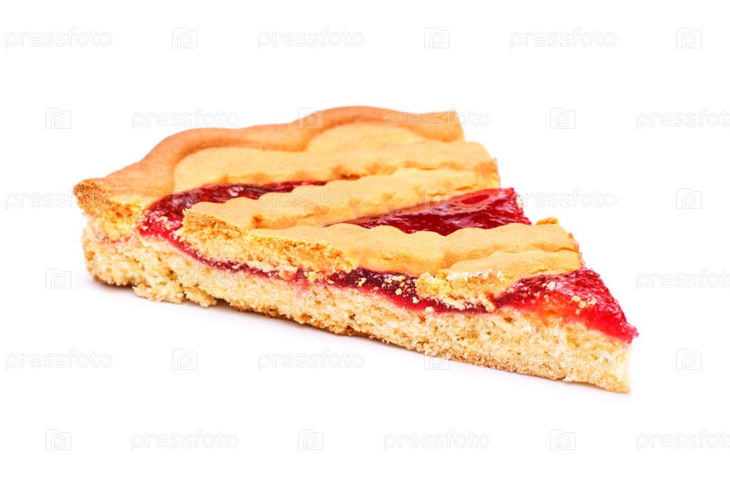 Кусок пирога с вишневым джемом, изолированный на белом фоне