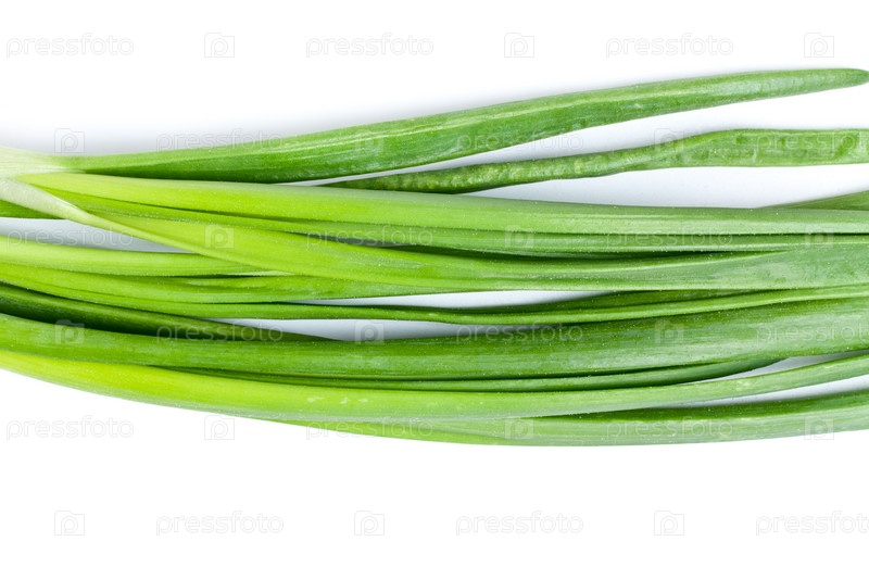 Свежий зеленый лук на белом фоне