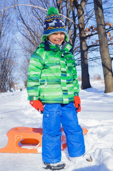 Маленький мальчик в зимнем парке