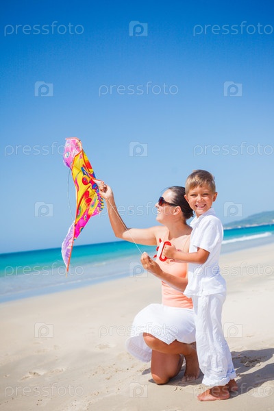 Мальчик с матерью на пляже