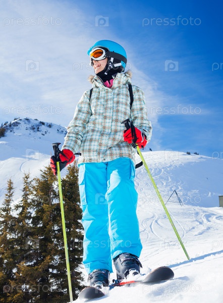 Женщина на лыжах в горах