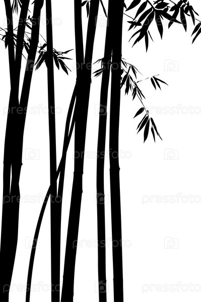Черные силуэты бамбуков на белом фоне, рисунок