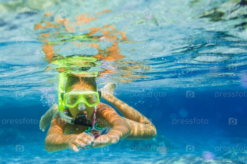 Девочка в маске под водой