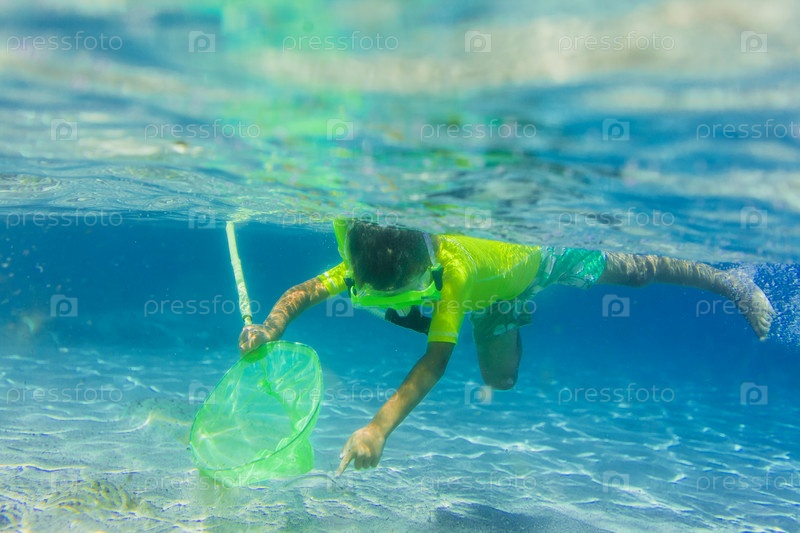 Мальчик плавает под водой