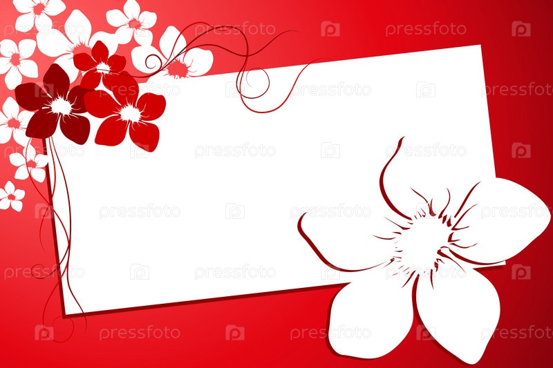 Пустая белая карточка и цветы на красном фоне