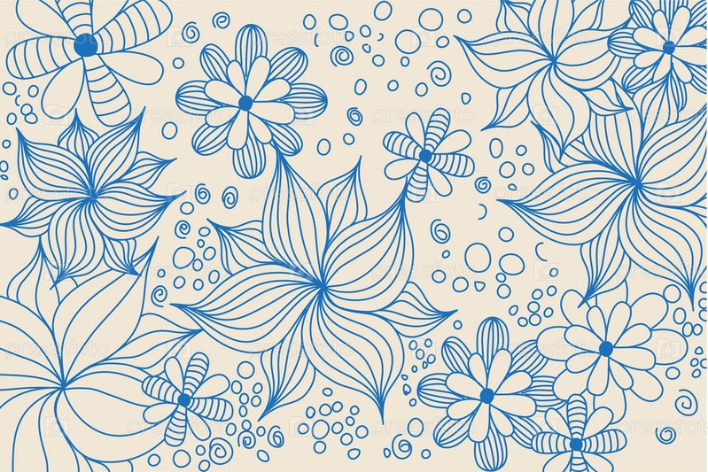 Синие морские цветы на светлом фоне, рисунок