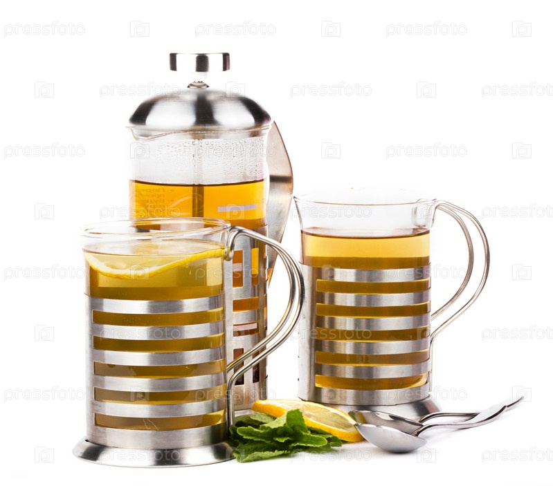 Стеклянные чайник и чашки