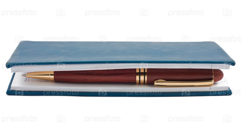 Ручка в закрытом блокноте на белом фоне