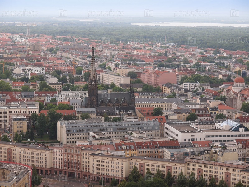 Аэрофотосъемка города Лейпциг в Германии