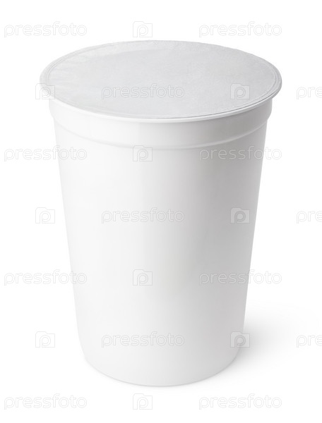 Белый пластиковый контейнер для молочных продуктов с крышкой из фольги