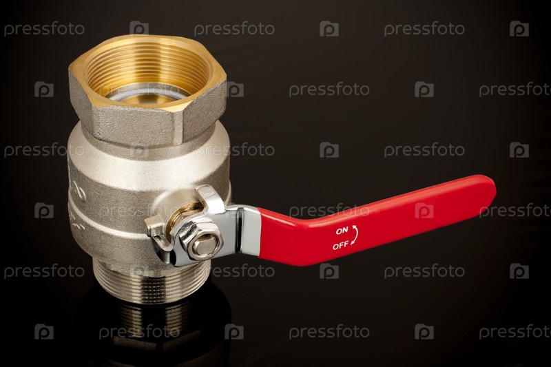 Латунный шаровой кран на черном фоне