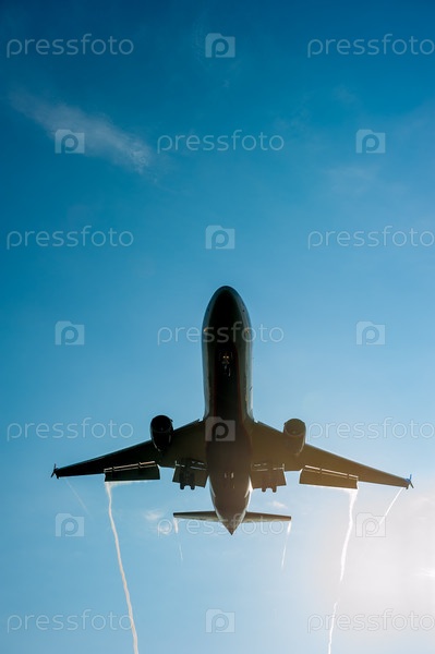 Садящийся пассажирский самолет