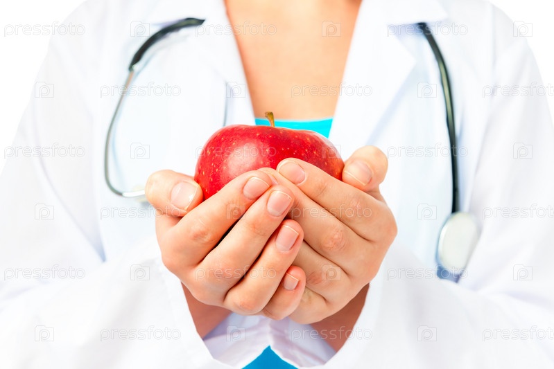 Врач протягивает яблоко