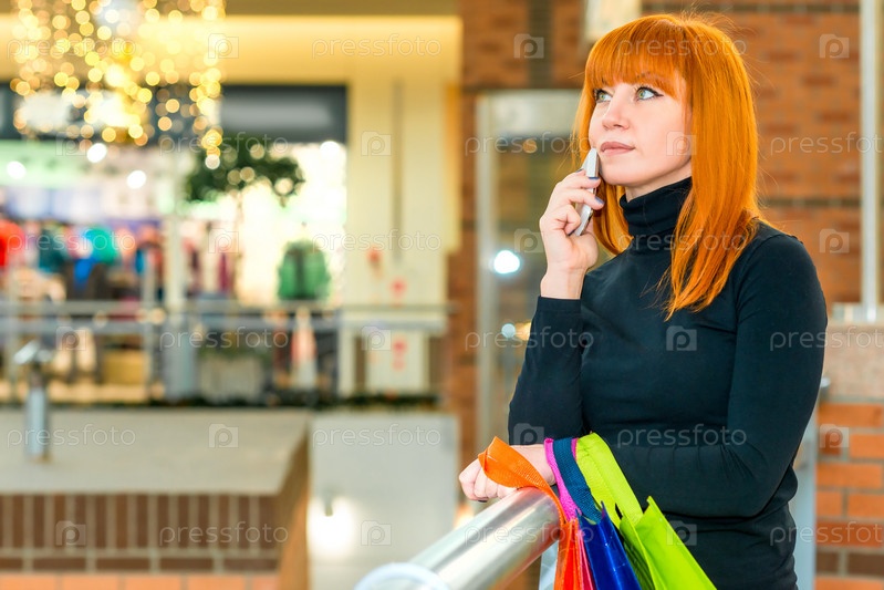 Девушка с телефоном и пакетами